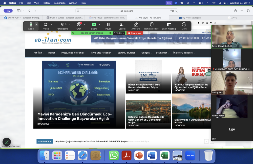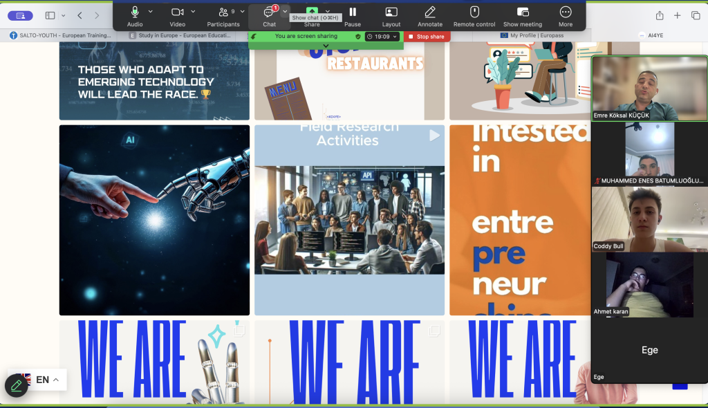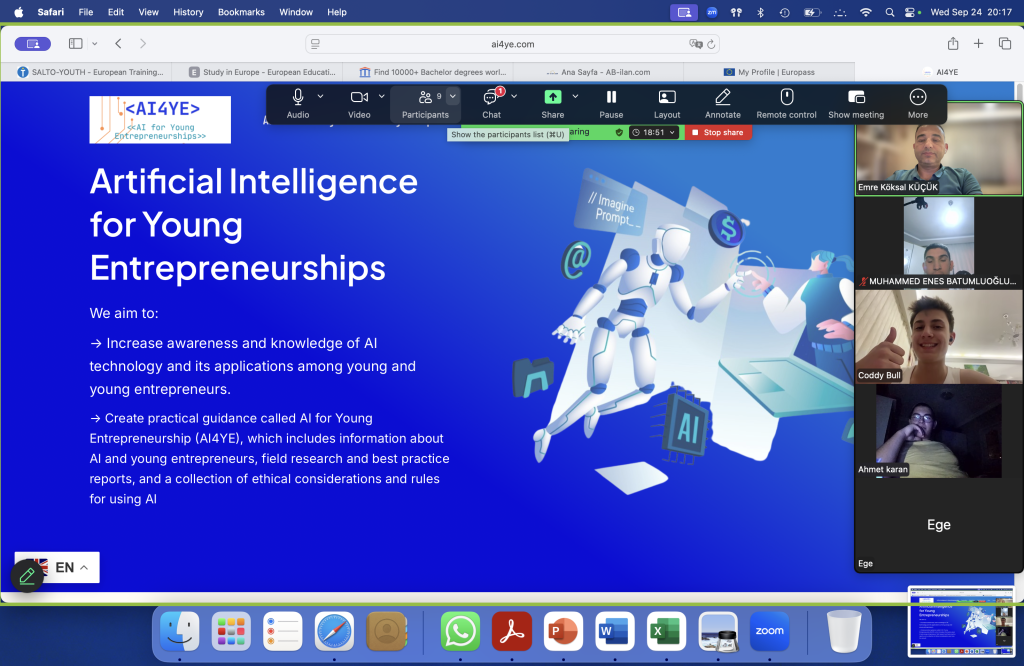 On September 24th, we held an online meeting where we provided information to 11 young entrepreneurs about Artificial Intelligence (AI) and entrepreneurship. The session focused on AI applications in data analysis, advertising, technology, and social media. We also introduced several AI tools and collected insights from the participants.