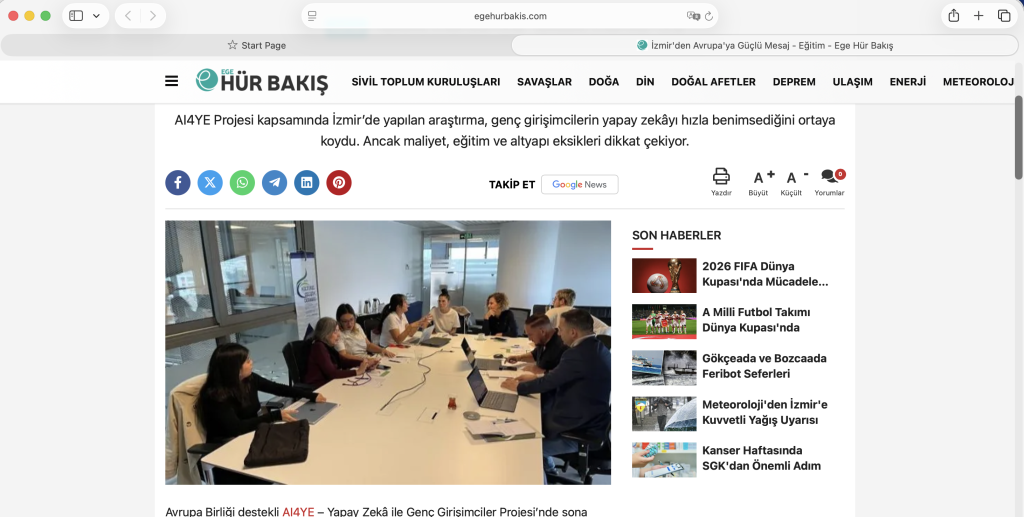 AI4YE projemizin görünürlüğü her geçen gün artmaya devam ediyor. Saha araştırmamız ve uluslararası hareketliliğimiz, yerel basında haber olarak yer aldı ve 3 farklı gazetede yayınlandı. Bu haberler beklediğimizin de ötesinde bir ilgi gördü.