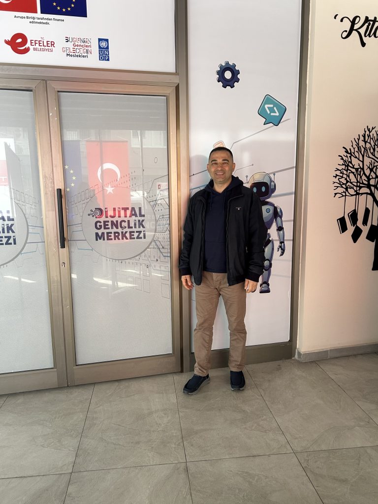 As part of the visit, a meeting was held with Efeler Municipality Project Officer Onur Nazili, where comprehensive information was received regarding the training opportunities, certification processes, and the advantages offered to young people at the center. In addition, potential collaboration opportunities with such institutions, where young people can develop their digital skills, were also evaluated.